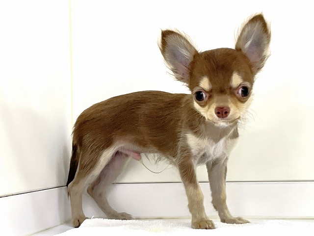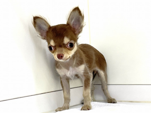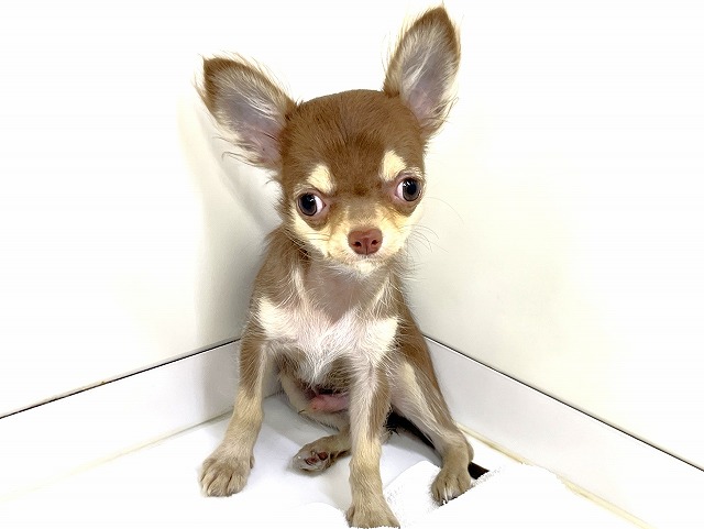 ☆綺麗なチョコレートカラー☆ とっても綺麗で大人気のチョコタン(^^♪ 丸顔で大きな目がメチャキュート☆彡 チワワらしいお顔に優しいお顔(^^)/ 初年度のワクチンも終わっているので安心ですね♪ 初めて飼う方にも飼いやすい月齢で≪おすすめ≫☆彡 是非、お早めにご確認ください みなさまのご来店お待ちしております★☆ ※写真・動画は10月10日撮影。(体重は1080g) |