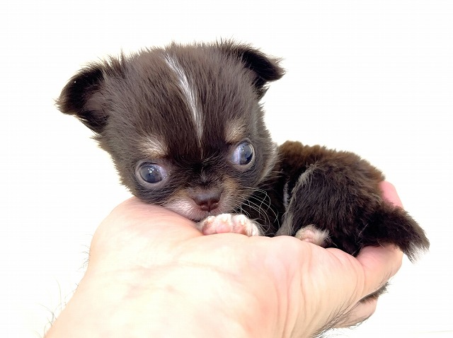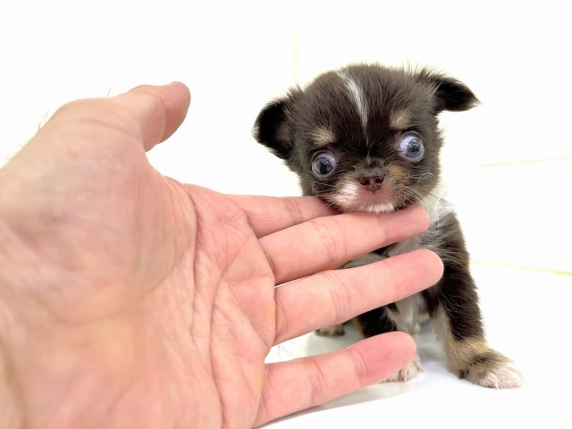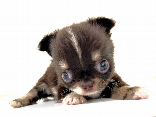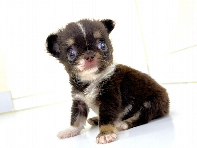 ☆詰まった真ん丸顔の激カワチワワ☆ 生後58日で≪340g≫の極小サイズ!(^^)! まん丸の可愛いお顔はメチャキュート!! コロコロの体型にポテポテ歩く姿が可愛すぎ(^^♪ 濃いチョコレートカラーなので成長が楽しみですね♪ チワワらしいアップルヘッドでチワワファンは≪必見≫です!! と~っても可愛いので店頭にてご確認ください☆彡 みなさまのご来店お待ちしております★☆ |