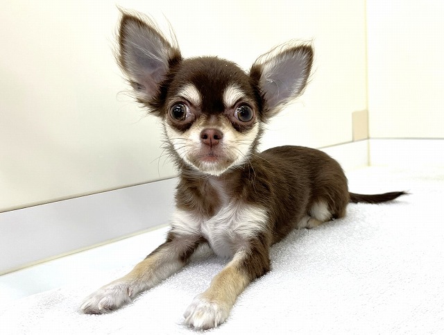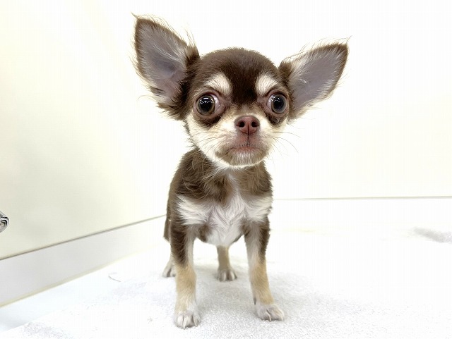 ☆チョコレートカラーの女の子☆ 明るい性格のとっても可愛い女の子(^^♪ 人好きで元気いっぱい☆彡 いつもフリフリしている尻尾がチャームポイント(^^)/ 当店人気ナンバーワン犬種の≪チワワちゃん≫です☆ とっても丈夫で飼いやすいので初心者さんにも≪おすすめ≫☆彡 この可愛さをお早めにご確認ください♪ みなさまのご来店お待ちしております★☆ ※写真・動画は11月18日です。 |