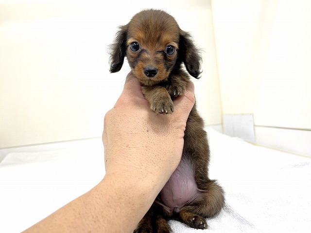 ☆超極小サイズのダックスちゃん☆ 超愛らしいお顔がメチャキュート(^^♪ 生後67日で≪460g≫の超極小ダックス☆彡 父犬:2.5kg 母犬:3.3㎏と超極小サイズ♪ 明るく人好きな性格・可愛いお顔・極小のサイズ!! どこをとっても≪超激カワ≫で≪おすすめ≫!(^^)! なかなか出会えない≪一押し≫の子犬です☆彡 カニンヘンをお探しの方も≪必見≫です☆ みなさまのご来店をお待ちしております☆★ ※写真・動画の撮影は9月29日です。 |