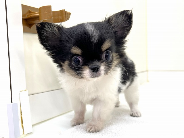 ☆激カワ&モフモフ☆ チワワらしいお顔の≪超激カワ≫のチワワくん(^^♪ 毛量たっぷりでモフモフのぬいぐるみ☆彡 愛らしさ満点の≪おすすめ≫の男の子(^^)/ 綺麗に入った模様も可愛く≪要注目≫☆ 人好きな性格で全てにおいていうことなし!! 当店人気ナンバーワン犬種なのでお早めに♪ 店頭にてご自身の目でご確認ください☆彡 みなさまのご来店お待ちしております★☆ ※写真・動画の撮影は10月20日です。撮影時体重≪435g≫ |