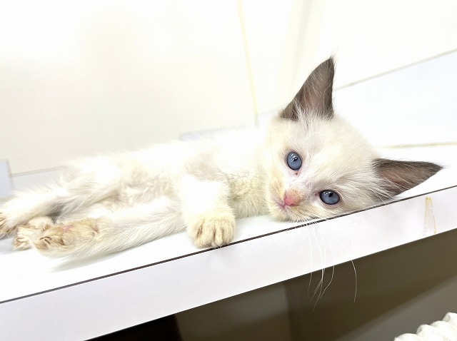 ☆人気の猫種ラグドール☆ 優雅な容姿に透き通るような綺麗な瞳♪ 気品漂うとっても綺麗な子猫です!! 名前の通りのぬいぐるみのような容姿に大人しい性格(^_-)-☆ 飼いやすい猫種の代表猫種の一つですね☆ 初めてのネコちゃんや多頭飼いを考えている方にもピッタリ♪ とっても可愛い女の子ですのでお見逃しなく(^^♪ みなさまのご来店お待ちしております☆★ 6215のラグドールとは姉妹です。 ※写真・動画の撮影は10月23日です。 |