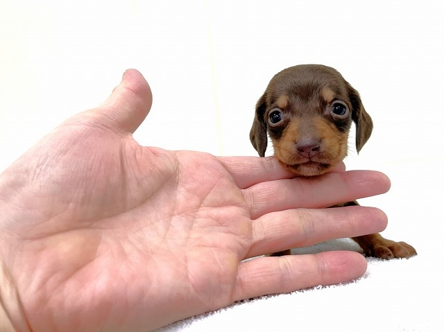 ☆超稀少!! スムースの超極小ダックス☆ 生後60日で≪365g≫と同月齢のチワワより小さいダックス(^^♪ とっても珍しいスムースコートも≪注目≫です☆彡 カラーも稀少なチョコイエロー!(^^)! 次にいつ出会えるかわからない≪超稀少≫な男の子♪ 小さくて甘えん坊なカニンヘンはみんなの人気者(^_-)-☆ 成長がとっても楽しみな可愛い子犬です!! ≪超レア≫≪一押し≫ですのでお見逃しなく★ みなさまのお越しをお待ちしております★☆ ※写真の撮影は11月3日です。(撮影時365gです。) |