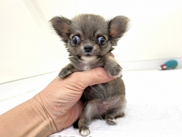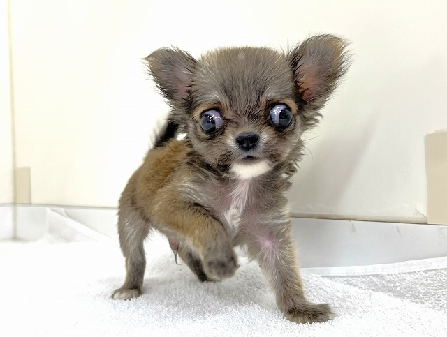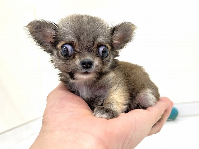 ☆生後58日で≪275g≫の衝撃サイズ☆ まん丸の詰まったお顔に大きな目がキュート(^^♪ 超々極小サイズの稀少なチワワくん☆彡 おもちゃのような愛らしい容姿(^^)/ あどけない表情や仕草でメチャカワ☆ チワワらしいアップルヘッドで可愛さ満点☆彡 極小な子犬をお探しの方は≪必見≫です♪ 是非、店頭にてご確認ください☆ みなさまのご来店お待ちしております★☆ ※写真・動画の撮影は12月9日です。 |
