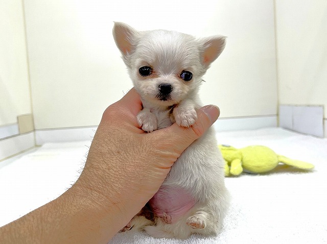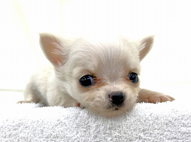 ☆超ミニ大人気のクリームの女の子☆ コロコロの愛らしい体型の可愛いチワワちゃん(^^♪ 優しいカラーの≪おすすめ≫の女の子!! 生後64日で≪380g≫の極小犬!(^^)! 人気のカラーに人気のドワーフ体型♪ 人懐っこい性格も可愛すぎですね!! 最近はなかなか出会えないので≪要チェック≫☆彡 みなさまのご来店お待ちしております★☆ ※写真・動画の撮影は1月6日です。 |