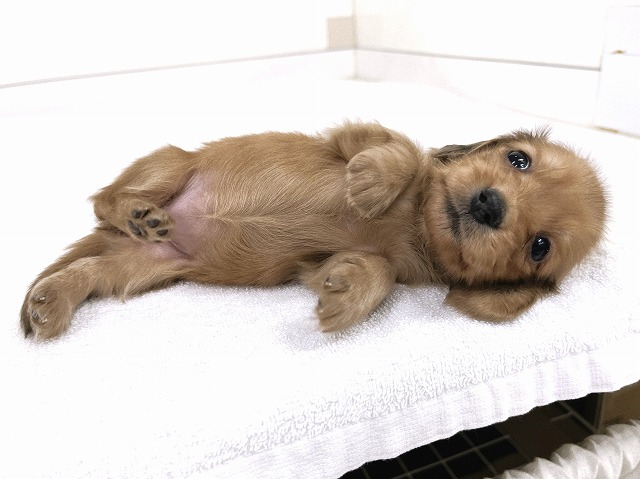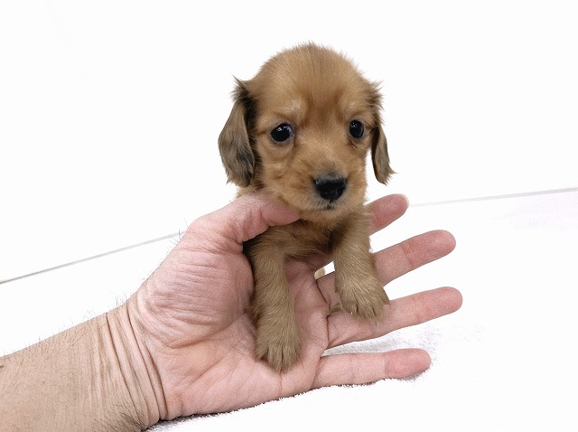 ☆可愛いお顔の極小ダックス☆ 優しいカラーに優しいお顔(^^♪ 生後57日で≪510g≫の極小ダックスの女の子☆彡 変わらない大人気犬種で初心者さんにも≪おすすめ≫♪ 可愛いお顔・小さなサイズ・甘えん坊な性格!! どこをとっても≪激カワ≫ですね!(^^)! とっても小さいのでカニンヘンをお探しの方も≪必見≫☆彡 可愛さ満点ですのでお早めにご確認ください☆ みなさまのご来店をお待ちしております☆★ |
